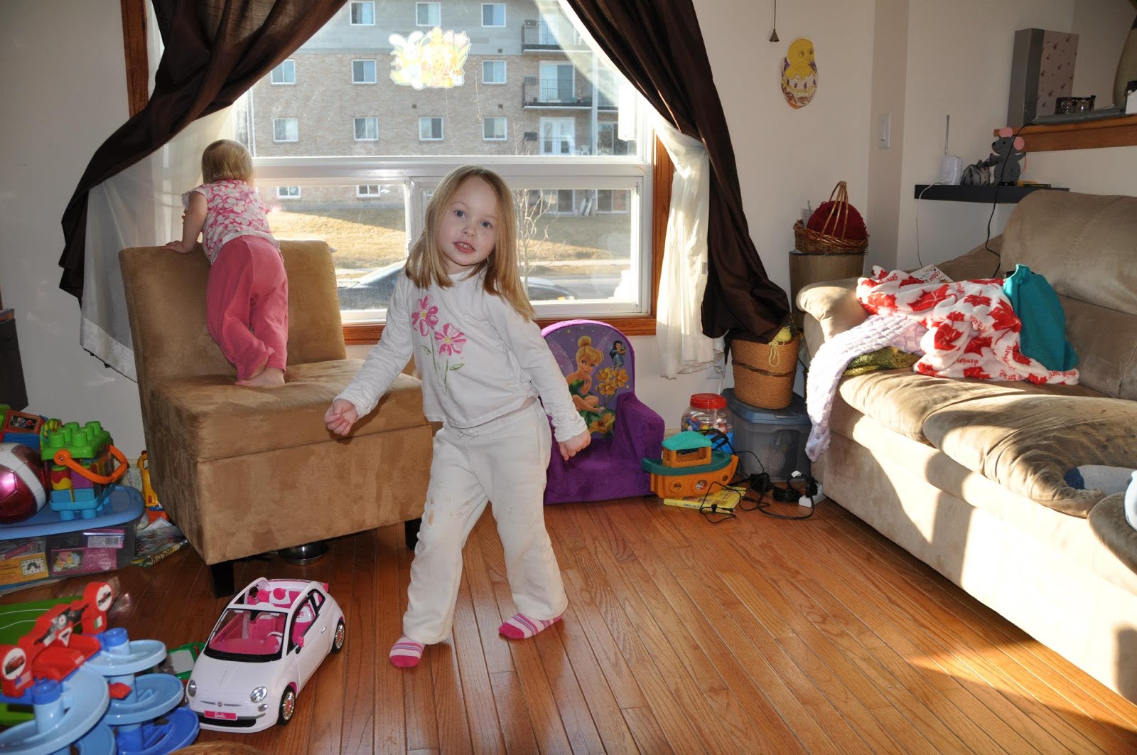 | Emma at 4 - With 1 year old Rose peeking out the window. |